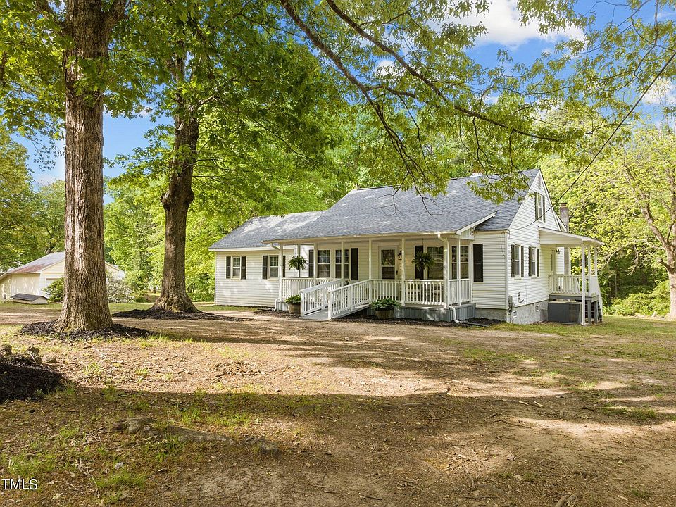 Nothing better than a beautiful Spring day in North Carolina- especially on your own special homestead. Hobby Farm or Rural Retreat- the choice is yours! 4.87 acres unrestricted land in Wake County/ Wake Forest. Partially wooded leading down to a creek. Newly renovated farm house, large multi-purpose building, small workshop and pole barn turned garage. Built in 1949 in the now Falls Lake area, this farm home moved to it's current location in 1977 off New Light Rd. Well loved and expanded through the years and spruced up for your new chapter. Lives as 3 bed/2 full bath but no septic permit on file. Modern convenience meets historic charm. Welcome home!