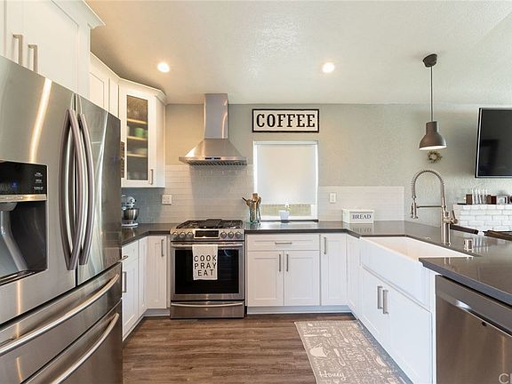 VIEWS, VIEWS, VIEWS! This 3 bedroom, 2 bath home backs up to views of rolling hills and the Cleveland National Forest. No neighbors behind you, just beautiful views of the mountains. The kitchen has been updated with beautiful white cabinets, quartz counter-tops with room for 4 bar stools, farmhouse sink, beautiful subway tile back-splash and a pantry with a farmhouse sliding door. The kitchen is open to the family room with white painted brick fireplace and a large picture window. All of the interior doors and front door have been updated. Newer laminate flooring throughout the house in a gray tone that goes well with the newly painted gray interior walls. Master bedroom has a sliding glass door leading to the backyard with spectacular views of the Cleveland National Forest. There is also an updated master bath with quartz counter-top. 2 additional bedrooms with an updated bath as well. The air conditioning unit and furnace were replaced along with the ducts in August of 2016. Windows replaced in 2017. The backyard has a dog run, nice big shade tree and is nicely sized for a future pool. New fencing being installed. Low taxes, low special assessments. This is a must see.