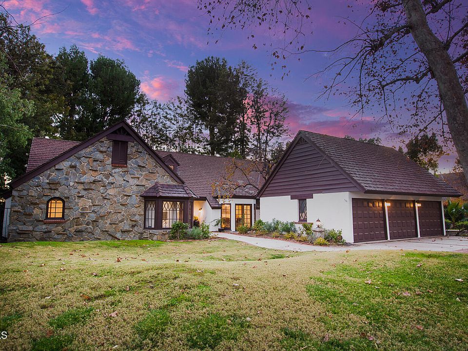 Northridge estate on private cul-de-sac featuring 3 bedrooms, 2.5 bathrooms, and large professional office that could be converted back to a bedroom. Mature trees, large lawns with full-sized swimming pool and spa surrounded by a large patio creates a great environment to relax or entertain. Oversized front door provides for a dramatic entry into the heart of the home. Entertainers layout highlighted by marble flooring and new recessed lighting throughout and a grand crystal chandelier in the living room. The large family room features vaulted ceilings, a massive stone fireplace and full wet bar. Updated kitchen with a breakfast bar, granite counters, refinished cabinets, and new stainless appliances. Floor to ceiling brick fireplace in master bedroom, vaulted beam ceilings, and beautiful hardwood floors. Fully renovated master bath with large walk-in rain shower, clawfoot tub with vintage bronze faucets, large vanity with double sinks and privacy water closet. Two additional bedrooms and fully remodeled bathroom complete the home. Spacious 3 car garage for extra storage or workshop, plus a wide driveway for extra vehicle parking. The home is also highlighted by dual zone air and heating, French doors, leaded glass windows, new gas line and pump for the pool and new interior and exterior paint The current owners converted one of the original 4 bedrooms into a large office that could easily be used as a bedroom.