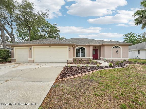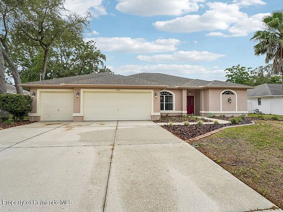 This Custom-built 3-bedroom, 2-bathroom, 3-car garage, Pool Home is in a highly desirable area of Spring Hill. The property measures .23 of an acre, that is beautiful landscaped with a fenced in back yard. Newer Roof (2019), A/C unit is regularly serviced, and everything is in working order. Enter through the front door and you will immediately feel at home. This home offers a split bedroom floor plan with a centralized family room, dining room and a breakfast nook that overlooks the pool. A Large Master Suite has tall ceilings and wood flooring, a huge walk-in closet, a second closet, and a private entrance to the pool. The renovated master bath has a double vanity, beautiful cabinets and counter tops a large, tiled walk-in shower and private water closet. The kitchen has been beautifully remodeled with updated cabinets, high-end granite countertops, and matching appliances. The breakfast nook is large and overlooks the pool area. Beautiful wood laminate floors throughout including in the kitchen, dining, family room and master bedroom. Both Bedroom 2 and bedroom 3 are oversized, they are similar in size, shape and both bedrooms can fit king-sized beds, which is not something found in production-built homes. The second bathroom / pool bath is equally as impressive, spacious and has direct pool access. The large laundry room has tiled floors, utility hook ups, additional cabinets and a utility sink. The three-car garage gives a lot of flexibility to have ample covered parking, a large workshop, storage or a combination of the above. The covered lanai and screened in pool area are perfect for entertaining family and friends. Outside is an irrigation system, the fenced back yard is private and there is even a utility shed to store your belongings. This home exceptionally clean, meticulously maintained and 100% move in ready. Attention to detail and pride in ownership is evident as this home shows better than most brand-new model homes. Spring Hill is residential zoned with no HOA, there are no CDD fees either and Flood Zone X means there is no flood insurance requirement. Call today for your private tour, and if you have any questions just ask.