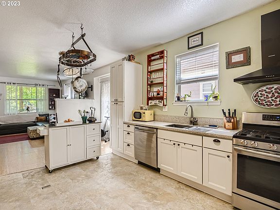Super cute Cottage home in the Portsmouth neighborhood. This 1-level home offers an open floor plan with large windows. New Cork flooring throughout the house in 2019. New kitchen renovation in 2021. Gas fireplace, Stainless steel appliances, quartz kitchen countertop, detached 1 car garage, Fenced backyard for entertaining. Minutes to St Johns and community park. A must-see! [Home Energy Score = 10. https://us.greenbuildingregistry.com/green-homes/OR10144684]
