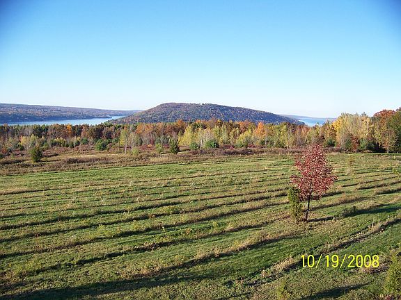 Keuka Lake view. 33.47 aces of wooded land with a stock pond, 7 acres of mature currants with more land to plant grapes and other crops.