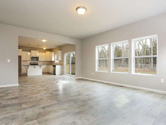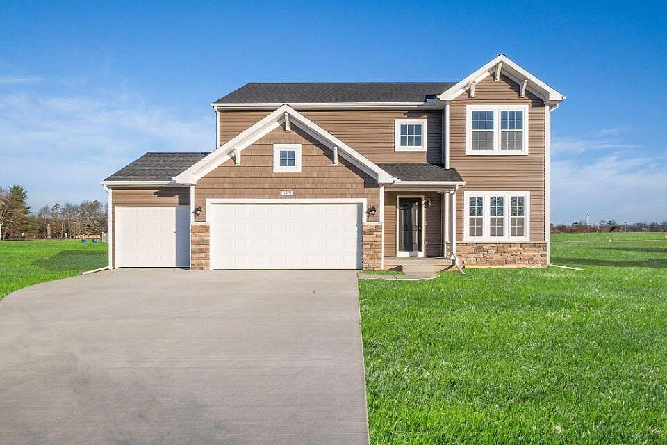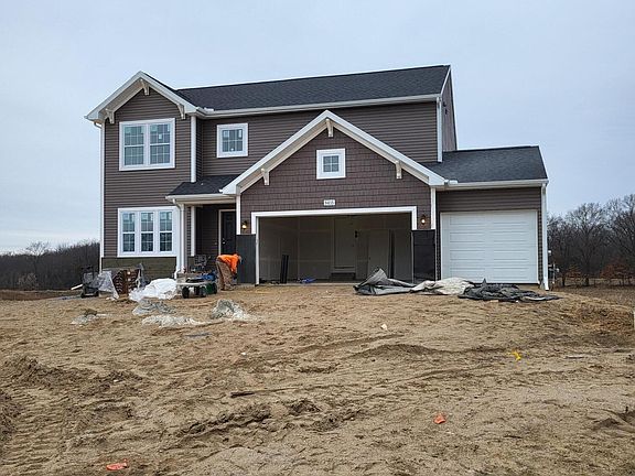 New construction home in Snow Valley ready in under 15 days, located in the Caledonia school district. RESNET energy smart construction will save owner over $1000 yearly plus home has 10-year structural warranty! This home is on average 13 years newer and 650 sgft larger than similarly priced homes. This home 2300 sq. ft. of open floor plan. The front entry greets guests and leads past a den, which will have French doors, and a powder bath, into a large great room, open to dining nook and kitchen. Dining nook has sliders out to a 10x10 deck, Kitchen will feature white cabinets, center island with pendant lighting, quartz counters, tile backsplash, Easily accessed from the kitchen are a large mudroom and separate walk in pantry. Upstairs find the primary bedroom suite, with private full ba bedrooms, another full bath and 2nd floor laundry to complete home. Home is located on a walkout site, which includes a slider and daylight windows in unfinished basement.