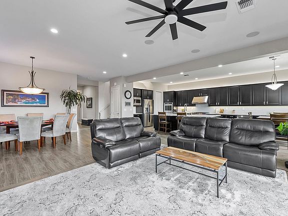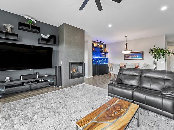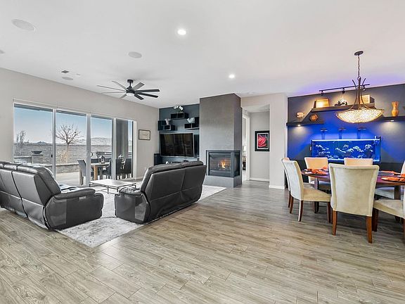 Abundant modern living with timeless design elements and countless upgrades! Peacefully positioned within the sought-after Bella Vista Ranch neighborhood in South Meadows, this 5-bed, 3.5-bath residence boasts more than 3600 sq ft of magazine worthy interior with elegant finishes that include luxury tile plank flooring, recessed lighting, and contemporary paint hues., Step inside to discover a sprawling great room with tall ceilings, a built-in gas log fireplace with slate tile surround, a home theater system with ceiling speakers, and a double-width sliding glass door that opens to the rear outdoor space. Custom made for the at-home chef, the adjoining kitchen hosts Kitchen-Aid stainless steel appliances including a 6-burner commercial range, built-in double oven, beverage fridge, dishwasher, and microwave. The new granite countertops are complemented by a full tile backsplash and the solid wood cabinetry has dove-tail drawers and is equipped with smart lighting above and below. The stone apron-style workstation sink has a commercial faucet and purified water dispenser, and the oversized island offers additional cabinetry for storage as well as extra seating capacity. Conveniently situated on the main floor is an expansive owner suite with 12-ft ceilings, several broad windows with stunning mountain views, an oversized walk-in closet, and a spa-like ensuite bathroom with a large double vanity with granite countertops, undermount sinks, and a wall-to-wall glass enclosed shower with dual shower heads. The large laundry room features built-in cabinetry, a stainless-steel utility sink with telescoping faucet, and a butcher block folding station for ease of use. On the second floor you’ll find a versatile den as well as an adjoining bonus room with substantial space and a multitude of options to turn it into the gym, playroom, theater, or hobby area you’ve always wanted. The generous guest rooms are found in pairs on both the first and second floors and can accommodate anything from multi-generational living to an adaptable home office space. Other incredible features of this residence include a fully insulated garage with smart garage door openers, keypad entry, and epoxy floor coating; a tankless water heater with circulation pump, and a 50-amp outlet for electric car/RV charging. Equally impressive as the interior of this home is the well-considered exterior. Providing new owners with their own private outdoor retreat for any season, the fully fenced back yard is highlighted with beautiful end-to-end paver work, a gorgeous waterfall feature, fire bowls, retractable patio sunshades, ceiling fan, outdoor lighting, a stubbed in gas line for a barbeque, pre-wiring for a hot tub, and a dog run. The front of the property boasts upgraded xeriscaping, multi-zone sprinkler system, and a holiday lighting package. What’s more? The HOA amenities include access to the community club house, pool, hot tub, playground, and onsite gym. Desirable properties with abundant space and this kind of attention to detail are an amazing find in this market. Don’t miss the chance to see it for yourself while you still can – schedule your showing today!