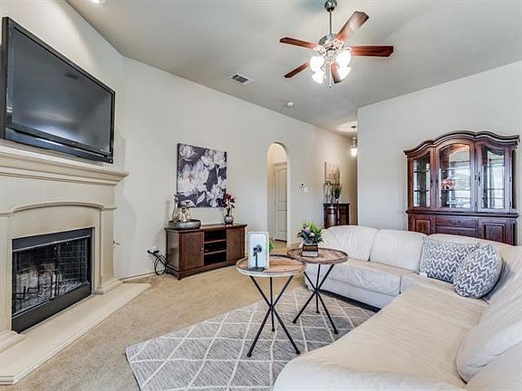Grab your morning coffee & sit under your covered back patio to experience the remarkable views & peaceful sounds of the vast greenbelt beyond. Exceptionally maintained, 1 story DR Horton home on a premium lot with access to neighborhood trails. Inviting & open kitchen features granite counters, sleek black appliances, gas cooktop, an abundance of cabinets & breakfast bar all open to two dining areas & a very generously sized living space anchored by grand fireplace. Master in wing of its own with garden tub, dual sinks, separate shower and WIC. Tranquil backyard with fruit bearing trees including peach & plum & greenbelt filled with generous amounts of blackberries. New elementary school coming next year!
