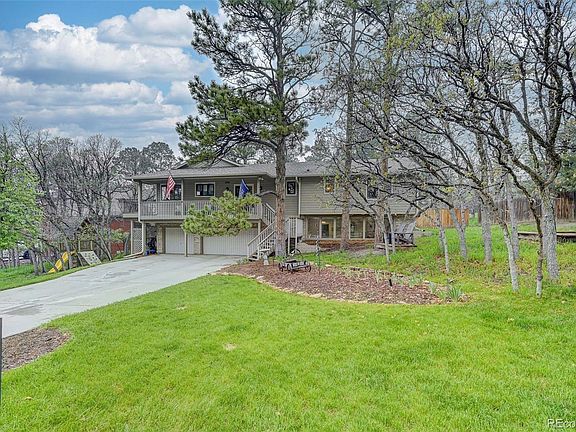Unique Pinery Home with Huge Oversized 3 Car Garage with Wood Storage Shelving and Work Bench Area (Your Truck WILL Fit in this Garage)*Extensive Garden Areas in the Low Maintenance Private Backyard* 5 Bedrooms*Main Floor Spacious Great Room with Vaulted Ceilings and Gas Fireplace* 4 Bedrooms on Main Level* Bright Sunny Basement with Lots of Windows and Spacious Second Great/Family Room*Large Bedroom and Full Bath in Basement-Easy Access from Garage Entry*Covered Front and Back Decks*Cul-de-Sac*Towering Pine Trees*New Roof, Gutters, Some New Windows, New Exterior and Interior Painting, Additional Electric to Garage*Deer, Turkeys, Fox, and Nesting Birds visit the Property*Colorado Mountain Style Living with Pinery Amenities*Quick Close Possible*Priced to Sell*Interior pictures available Friday afternoon 5/19/23*