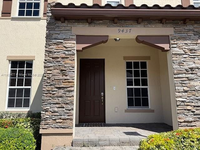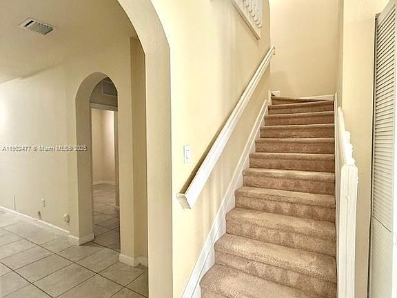 Spacious townhouse 4 bedrooms, 3 full baths, located at Kendall Square Community. One bedroom downstairs with a full bathroom, ceramic tile throughout the first floor and carpet on the second, large kitchen with plenty of storage and stainless steel appliances, large size washer and dryer. Also, its has a large garage for two car, and convenience patio .The community has a nice clubhouse, with fitness center, pool and kids play area.
