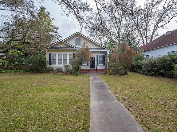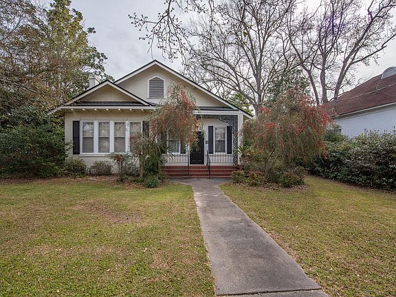 SELLER IS OFFERING COMPLETE WINDOW REPLACEMENT-$15,000 VALUE - This lovely bungalow is loaded with historical charm, beautiful hardwood floors, 10' ceilings, wide moldings, a large formal dining room and beautiful entries at front and rear of home. This home originally had a 3rd bedroom which was converted into a large walk-in closet & laundry area. Cozy outdoor living area in rear with pergola covered brick patio. Many features have been updated, kitchen, bathrooms, new plumbing, electrical, and more. All appliances remain including refrigerator, washer & dryer. Beautiful large windows throughout the home. Property includes stately, old growth Live Oaks and landscaping custom designed by ''Southern Living'' This very special home has so much character .. it's a must see!