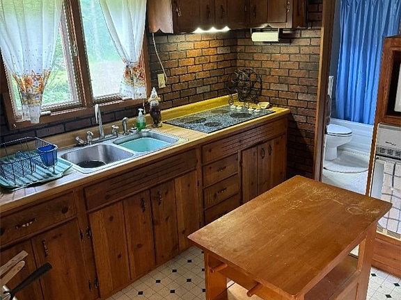 Ready to live like you are on vacation? Tucked away in a woodland setting, this quaint 2 bedroom ranch house offers a peaceful retreat. The exterior is surrounded by trees and soothing sounds of nature which you can enjoy from the attached deck. Inside you will find a convenient open kitchen with a small island and a breakfast nook. The 2 bedrooms are good size and boast lots of natural light. The laundry area is conveniently located in the middle of the house with an abundance of storage. Stay warm in the winter with a propane furnace that's only 6 years old and a newer fireplace in the living room. The back of the house hosts a full length closed in sun porch complete with woodstove for year around enjoyment. Outside there is a huge garage with concrete floors and electric. The overhead doors are less than 5 years old. A second story loft area can be made into living space or used for additional storage. More than ample storage for all your outdoor equipment. Additionally when you cross a tiny bridge within the trees you will find small cabin which could easily house guests who will beg to come enjoy your little piece of heaven. This could be everything you've been waiting for.