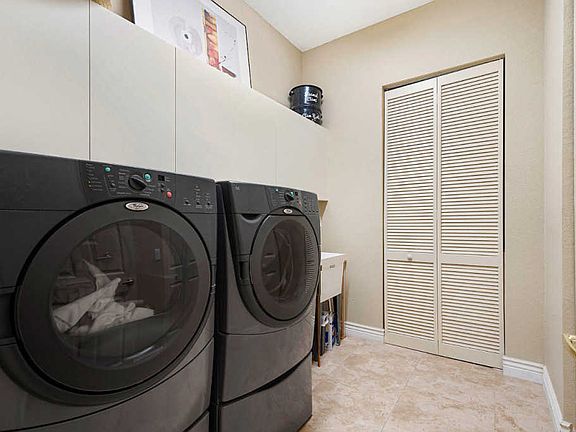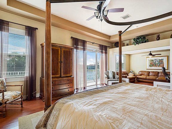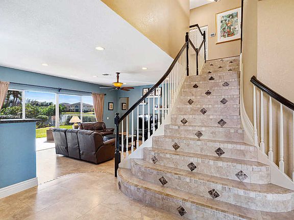 IMMACULATE - FULLY UPGRADED - WATERFRONT - SPRAWLING FLOORPLAN! This 5 bedroom, 4 full bath home has been meticulously cared for inside and out by the same owner for the past 11 years! Exterior special features include grand exterior entrance with spectacular curb appeal, oversized driveway with pavers newly stripped and sealed, upgraded planting beds including 40-50k in exotic specimen palms and curbed with stone, serene and peaceful large fully fence in private back yard with long lake views, pristine patio with soft lighting. The interior is packed with upgrades and special features including but not limited to: custom designer tile work with marble inlays and decorative trimming, towering columns, high ceiling and huge windows allow tons of natural light to pour in, upgraded lighting