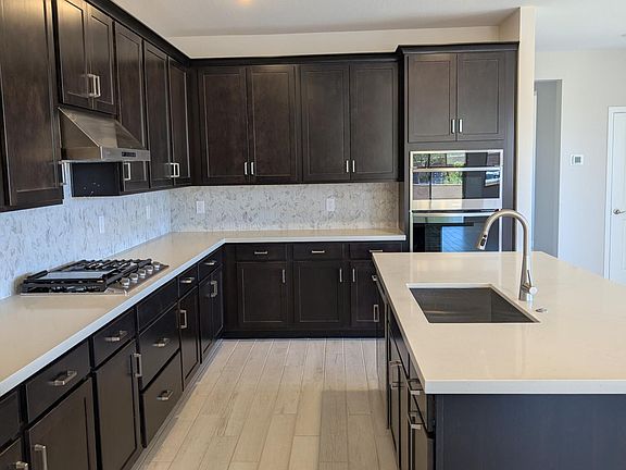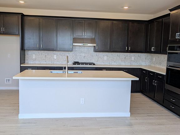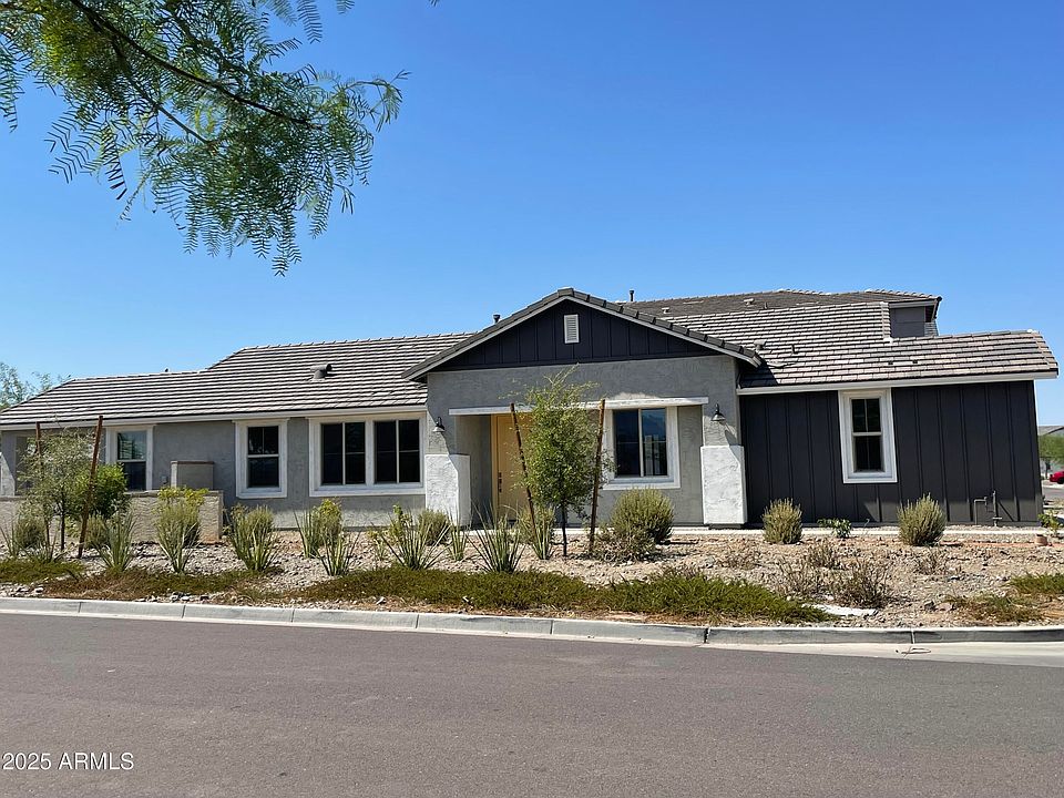 Only a few homes remain in the highly sought after Eastmark community - especially stunning single level homes like this one! This residence showcases a gourmet kitchen with a gas cooktop, a wall mounted oven and rich 42'' Birch upper kitchen cabinets complete with Satin Nickel pulls throughout! Carrara Breeze Quartz countertops are beautifully paired with a Marazzi Marble Arabesato Matte 2x5 Picket Backsplash adding elegance and texture to the kitchen. Durable 6x36 DT Vicinity White wood-like tile runs throughout the main living areas, with cozy carpeting in the bedrooms. The home is finished with sophisticated two-tone paint - Drift of Mist on the walls and Extra White trim - creating a bright, clean and inviting atmosphere! A Must-See!