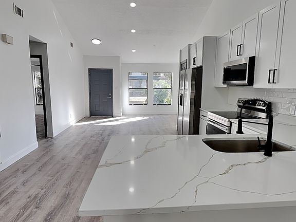 Discover this beautifully renovated, spacious 2-bedroom, 2-bathroom home located in the charming community of Gotha. The expansive family room features stunning laminate flooring that adds warmth and elegance to the living space. The open-concept kitchen is equipped with sleek stainless steel appliances and a cozy breakfast nook, perfect for casual dining. Abundant natural light fills the home, creating a bright and airy atmosphere throughout. Both bedrooms are generously sized, providing comfort and versatility. Enjoy outdoor relaxation on the screened-in patio, ideal for outdoor gatherings or quiet evenings. This move-in-ready residence combines modern updates with a welcoming ambiance.