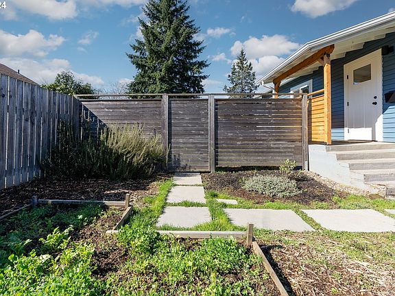 This sweet gem packs a punch. A thoughtful transformation over four years has brought a beautiful new kitchen and bath with custom cabinets and quartz countertops. Additionally, the kitchen has handmade Fireclay tile backsplash, new appliances, and pantry and stacked laundry nearby. Other updates include: HVAC, windows, electrical panel, cedar siding, exterior paint, new roof and gutters. The home scored 9 out of 10 on energy efficiency! Garden beds, raspberries, and blueberries in place and enough space to add an ADU or develop the existing garage/shed into an office or studio. Unfinished basement offers storage. A big fenced yard and double wide driveway for parking all the cars or toys. On top of it all, this sweet spot is just minutes to everything St Johns has to offer. There is nothing left to do but move in and enjoy the good life. Offer deadline Tuesday 9am. [Home Energy Score = 9. HES Report at https://rpt.greenbuildingregistry.com/hes/OR10058168]