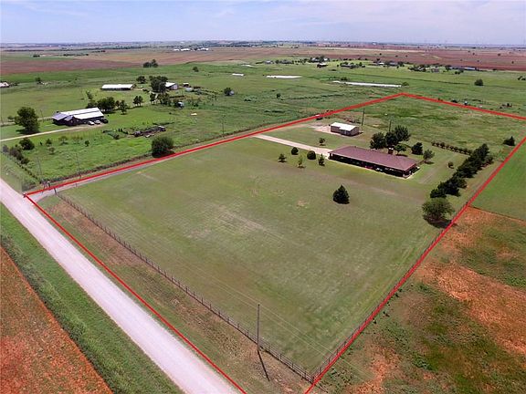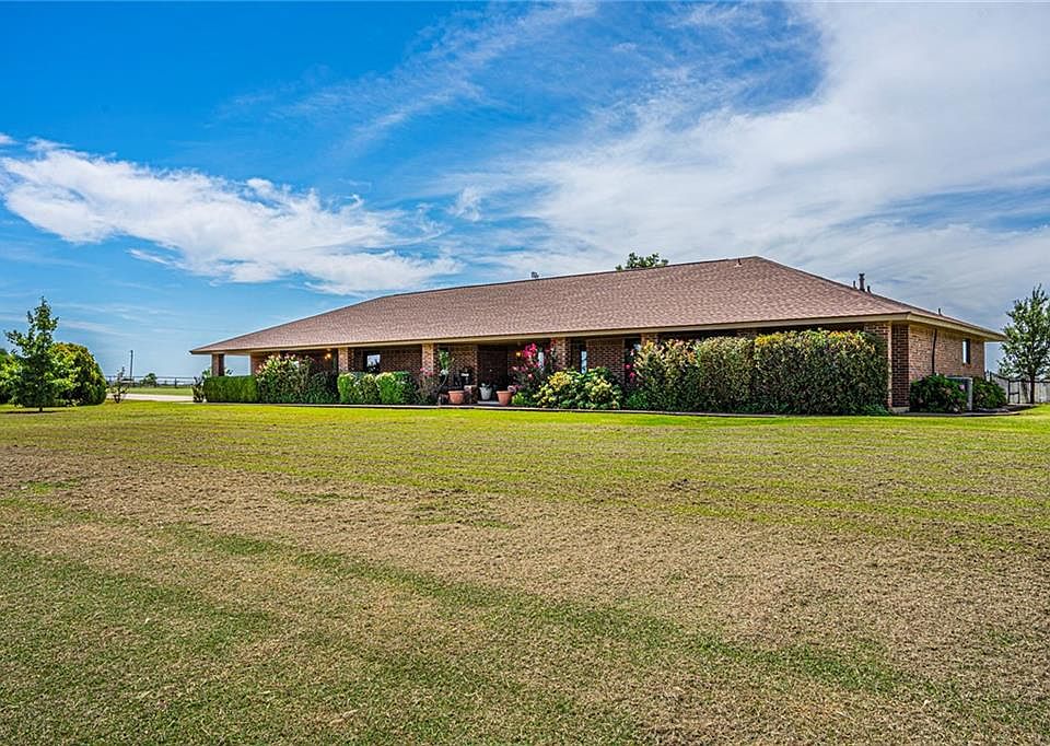 A little patch of heaven to call your own. Whether you are interested in full-time country living or a great weekend getaway from the city to run your horses, corral your cattle and chase your chickens, this 8.22 acre property is just what you need. The home has a great floor plan with living room, dining areas & kitchen creating a wonderful place to gather with family and friends. A huge 2nd living area offers the opportunity to create an awesome game room, home office or home school/virtual learning room. The spacious primary bedroom has an ensuite bathroom with two vanity areas, whirlpool tub, shower and TWO walk-in closets. The 2nd & 3rd bedrooms share a Jack&Jill bathroom. A half bath next to the laundry is plumbed to add a shower. Enjoy unobscured gorgeous Oklahoma sunrises on the front porch and sunsets on the back patio. All new Pella windows. 20x40 shop. Private well for water. Garage capacity: one attached w/addt. spaces in shop. Roof replaced in 2012 w/high impact shingles.