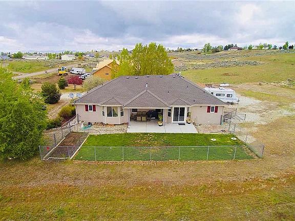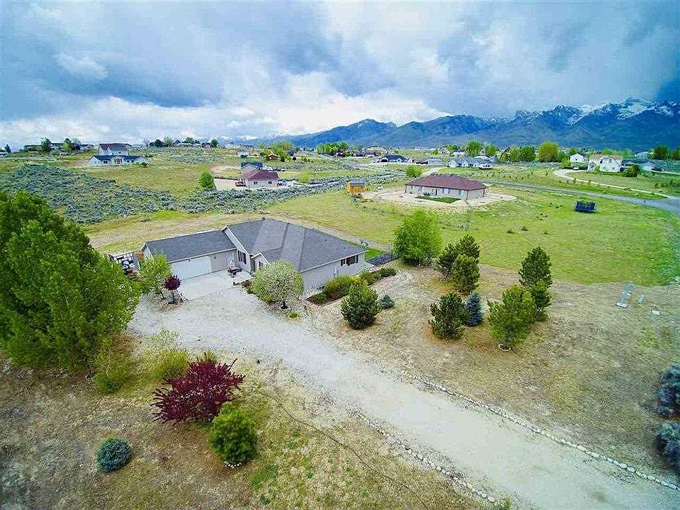 - Exterior Features: Patio- Covered, Trees, Storage Shed, View of Mountains, Fenced- Partial, Gutters & Downspouts, Landscaping: Natural