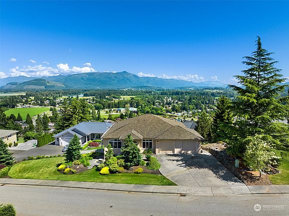 { COVETED TINAS COMA Neighborhood } Breathtaking panoramic views of the Majestic Cascade Mountains & Skagit River. As you step inside, an abundance of natural light flows through the rooms. The kitchen, featuring granite countertops, overlooks the space, creating a seamless area for cooking & casual gatherings w/ the grand views from all windows // Retreat to the luxurious owner’s suite, complete w/walk-in closet & spa-like bath // The expansive basement is a car enthusiast’s dream, providing parking for up to 5 add’ vehicles/toys & offers plenty of storage space for all your needs w/ it's own separate driveway & could be easily converted to a finished basement // Outside, enjoy the beautiful Trex like deck to soak in the spectacular views!