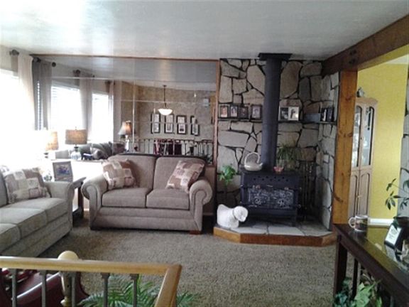 IT'S OUTSTANDING! This 3 bed 2 bath with lovely new carpet, craftsman finish handrails and beam, beautiful handmade bar in basement family room, new counter tops, all appliances stay, tons of storage and a covered deck with screen and glass panels, large patio with an amazing perennial filled back yard ! Living room with beautiful wood stove opens to the eat in kitchen complete with all the appliances. 3 bedrooms, 1 bath on the main floor, large bath, family room and spacious laundry room plus extra storage in the basement.Come see, it's that special!