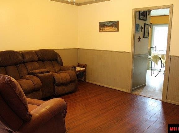 2 bedroom 1 bath with large laundry/office on approx 3.25 acres of mixed grass & timber. Covered, full length front country sitting porch. Open back sundeck overlooks pretty valley view. Private and secluded but neighbors are just out of sight. Mixed shade and sun. Plenty of space for gardens. Fenced dog yard, 2 car carport. Major updates include newer steel roof, and heating & cooling. About a mile on gravel & approx. 5 miles to town. Creek runs most of year.