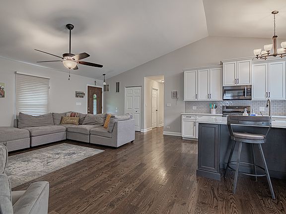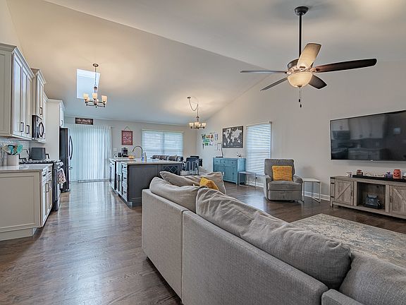 This GORGEOUS Parkview Subdivision ranch has been completely REMODELED AND UPDATED! Spacious Great Room with dramatic vaulted ceilings, skylight, hardwood flooring, and an Island kitchen! Custom 42" cabinetry with soft close doors, wine rack, built-in shelves, under-cabinet LED lighting, Quartz Counters, and breakfast bar! Newer stainless steel appliances, extra wide stainless steel sink, disposal, and more! Both baths fully remodeled in 2022! New laundry room in 2023 with new washer, dryer, flooring, painting, cabinets, and shelving! Bedrooms each have new flooring, closet organization system, doors, and baseboards (2022). Double pane replacement windows throughout (2016). White interior six-panel doors, 5-inch baseboard, and 3/4 inch quarter-round trim. All mechanicals have been replaced- Water heater (2023), Roof and HVAC system (2012), Garage heater (2023), Nest SMART HOME with a smart thermostat, doorbell, smoke detector, and carbon monoxide detector. New light fixtures too! Huge FENCED YARD with patio. Great location across from Johnson Park with playground, tennis courts, basketball courts, baseball/softball fields, fishing pond, walking paths & more! Attached two-car garage with new door opener. HIGHLY RATED 54/211 schools too! *WELCOME HOME *