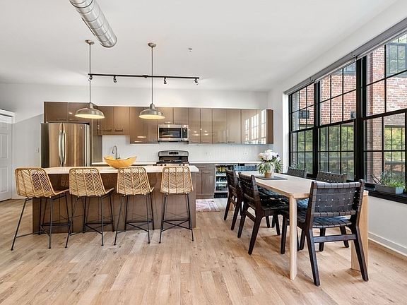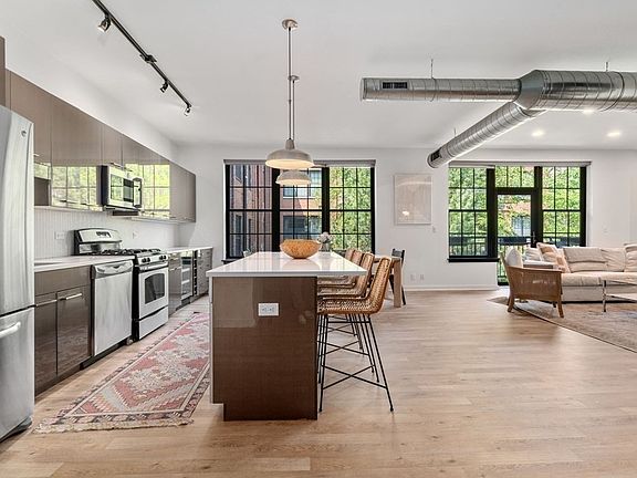 SATURDAY OH CANCELLED! Bright & sunny 1+ bedroom with flexible floor plan in the highly sought after DNA lofts! This sweeping open concept living/kitchen/dining with a full wall of floor to ceiling windows is the perfect entertaining space. Off the living space there is direct access to your private terrace overlooking the courtyard providing the perfect quiet oasis. A well appointed chefs kitchen has a wall of custom cabinetry, stainless steel appliances, quartz countertops & large island. The main bedroom is generous in size & has great closet space. The bathroom includes custom tile, updated vanity & frameless step in glass shower as well as additional storage closet and laundry. The flexible floor plan offers many options to add a second bedroom, work from home space, or home gym. Additional building amenities include; central A/C, gym, common roof deck & 1 off-street parking spot. This professionally managed, elevator building is rarely available & one you don’t want to miss!