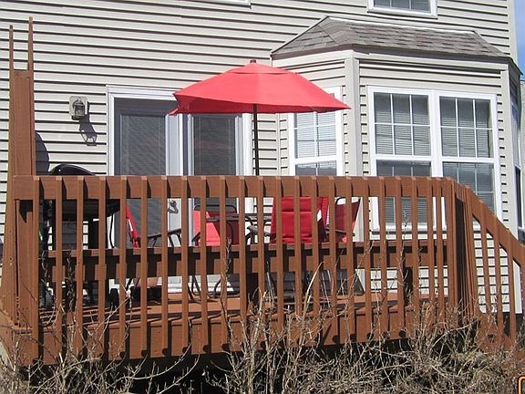 Stunning condo in a private and tranquil yet convenient location. Much sought-after floor plan with first floor and second floor master suites. Main floor laundry option. Two story great room with impressive gas fireplace. Gleaming hardwood floors in foyer, great room, staircases, hallway and bedrooms. Great room opens to dining area and applianced kitchen with ceramic tile floors. French doors from great room lead to a deck that overlooks woods and a small creek. Spacious loft has a large adjacent closet and offers plenty of space for an office or guest quarters. Finished lower level included a recreation room and a theater room with a platform for tiered seating. Lower level utility room includes second laundry option and plenty of built-in shelving for storage. Two car garage with convenient access from foyer.