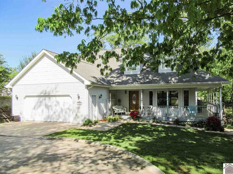 Amazing custom built 5 bdrm, 3 1/2 bath Kentucky Lake waterfront home. Gentle slope, level front circular driveway PLUS private boat dock w/lift & water view/access year round! Wrap around porch leads to full deck w/breath-taking views (full covered patio below). Stroll midway down to enjoy a bon fire at the sun pad or just to sip coffee & relax w/a good book. One owner home, custom kitchen cabinets w/granite countertops & multiple pantries, formal dining room, vaulted ceiling in great rm, master suite on main floor, lg family/rec rm w/gas log fireplace in finished, walk-out basement (bdrms 4 & 5 here). Loft "bonus" area on 2nd floor (office/sitting rm), craft rm, 24'x36' woodworking shop/garage. GREAT FLOOR PLAN, AWESOME LOCATION, & MORE!