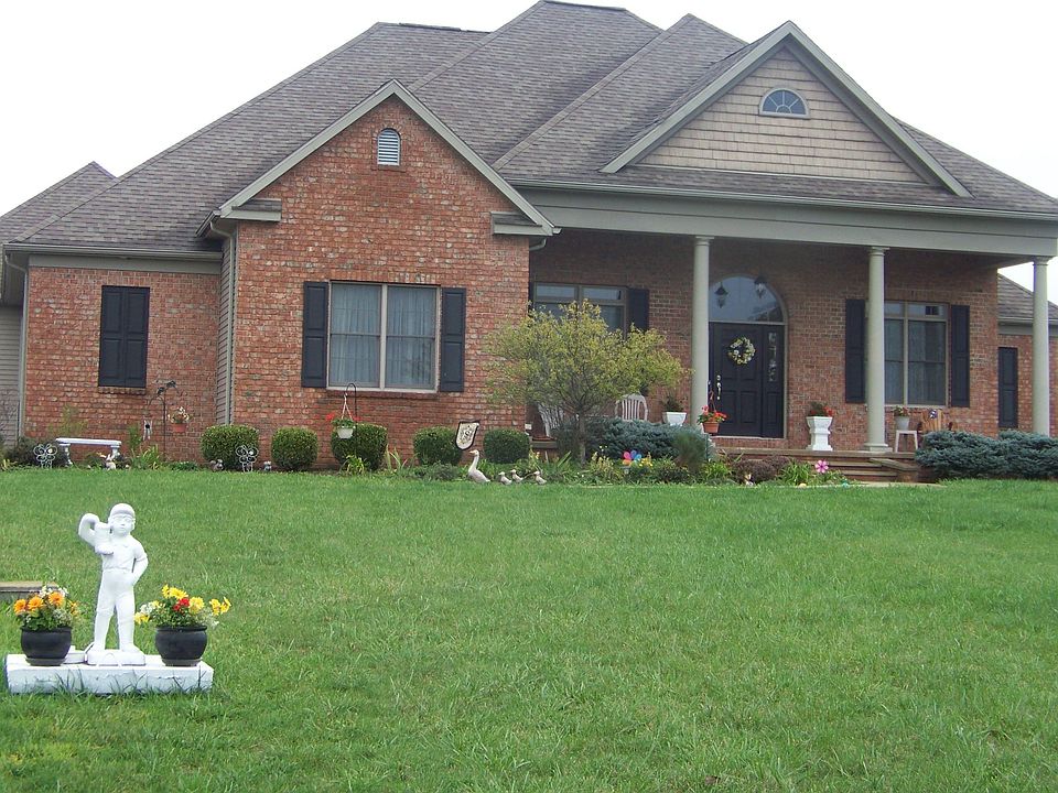 PRICE REDUCED! NOW $365,000Premier brick and vinyl sided home with custom features through out. Ceramic tile flooring in baths. Beautiful hardwood floors in the formal dining room and kitchen. Open floor plan. Living room with gas fireplace. The dramatic kitchen is highlighted with an eat in area, center island, breakfast bar and pantry. 4 bedrooms, 3 1/2 baths. Jack and Jill bathroom. Luxurious master bedroom suite with gas log fireplace, large spa tub and generous walk-in closets. Upstairs 16 x 30 bonus room that could be used as: 5th bedroom? theatur/ media room? play room? Full basement with stud dividing walls with the 4th bath tub and toilet. Basement has additional plumbing in place. Covered back patio. 3 car attached garage. 9.5 acres. Plenty of room to have pasture/horses. Large 24 x 40 stick built building that could be used to house animals, workshop, car storage, etc. A cozy covered patio is attached to this building to enjoy the country views. A creek runs across the front of this lovely property.Call Kathy Kaman, Realtor, at Ewell & Assoc. Inc. 419-668-4888.