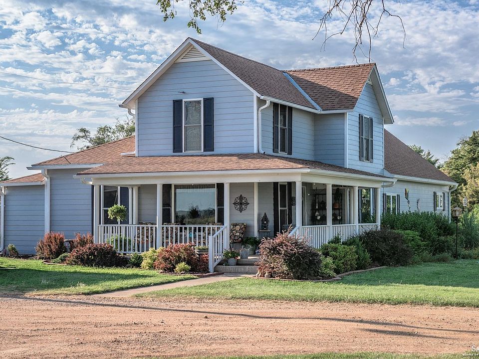 Come sit on this romantic white pillared covered porch and watch the brome sway. Gorgeous updated home sits on 9.8 acres (more available) w/ 40x60 shop, 24x24 detached garage, tack room, garden shed, and chicken coup. Kitchen includes granite counters, working island, high-end appliances w/ gas cook top, built-in microwave and custom cabinets. Step inside the Great room with massive stone fireplace and vaulted ceilings, perfect place to entertain + an additional private family room and formal dining room. Huge main floor master w/ walk-in closet plus giant soaker tub w/ custom granite overlay and walk-in closet. Sprawling home also includes another main floor bed, 2 more upstairs bedrooms and a finished basement! This home has been thoughtfully updated not only w/ gorgeous cosmetic materials, but also the smart/efficient ones with wood fireplace ducted to warm the whole main floor & zoned HVAC to maintain all levels comfortably. Additional Pasture ground available! See agent remarks.