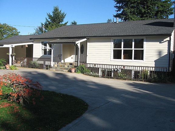 lower unit has separate entry designed for caretakers living , with large dual head walk in shower in master bathroom along with jetted Jacuzzi tub and see through fireplace into master bedroom . upper unit has 5 bedrooms for care-home, 2 full bath including 1 large wheelchair access shower , hardwood floors , separate heat for each bedroom , marble counter tops , double vanity bath sinks, commercial gas water heater, wheel chair accessible front and rear access , 36" wheelchair access bedroom doors - huge 2000sq ft attached garage/shop - gas fireplaces throughout . Circular front driveway. Radon gas mitigation system .