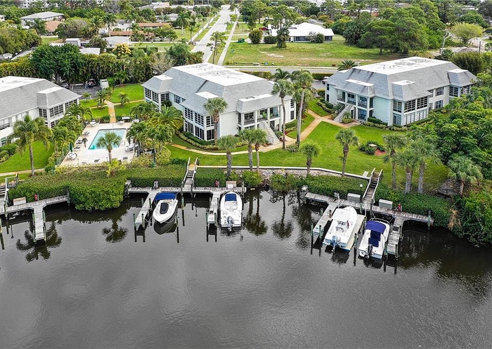 Beautifully renovated, furnished 2nd floor 2 bedroom 2 bath condominium with air conditioned, enclosed porch. Enjoy the sunsets and great views overlooking the community pool and half mile lake. Close to everything in Stuart and Jensen Beach. Docks NOT available. No pick up trucks.