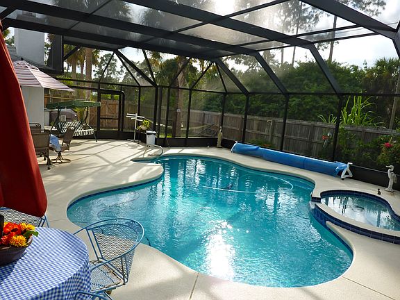 PRICE REDUCED! ALL OFFERS CONSIDERED! This tropical, concrete block, 2400+ sqft, pool home is on a .34-acre lot with a privacy fence, across the road from a pond perfect for fishing. Featuring a split floor plan with a large master suite, 2 oversized guest beds, 2 baths, 2 car attached garage, plus a spacious 1 car detached garage (28X16with water and electric). The kitchen features a pantry, large breakfast bar and all appliances including a new stainless dishwasher. The family room boasts a wood-burning fireplace with a large mantle and custom built-ins on both sides. The spacious master bedroom suite includes generous his/her walk in closets, an en suite with a walk in shower, separate tub, dual sinks and vanity. Sliding doors lead from the master to the Great room under air. Several tinted mirrored sliders lead to the vast patio featuring a heavy duty custom pool enclosure perfect for enjoying Florida outdoor living and entertaining. You can relax knowing this solar heated pool features a saltwater system which virtually cleans its self and requires much less attention and 1/2 the cost of chlorine pools. End your day laid back in the bubbling spa listening to the waterfall flowing into the pool; which can be heated via solar or gas with the in ground tank from Amerigas. There is also a bonus-unscreened patio for sunbathing. In case of a power outage, no worries with this house, it is already wired for a generator! This is your perfect home for retirement, or a place to raise your family come and make this your new home. INCL: HURRICANE- SHUTTERS.Additional property info: http://www.forsalebyowner.com/listing/3-bed-Single-Family-home-for-sale-by-owner-944-Nixon-Circle-NE-32907/23972452?provider_id=28079