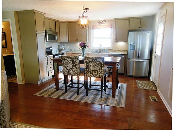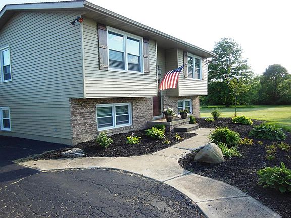 Country living on 1.6 acres-only minutes from everything you'd need! 1388 sq ft bi-level w/ 2 living spaces. Completely updated & remodeled! In the last 2 yrs the owner has added or replaced the following: new windows in the entire house, storm doors, added on to the deck, hardwood flrs throughout, rod iron railing on stair case, ceiling fans, recessed lighting, light fixtures, new garage roof, new doors throughout house, new water tank, storage unit in garage, garage door opener, painted siding, added barn wood shutters. Also completely gutted & remodeled the kitchen & bathroom. Added a 2nd FULL bathroom on the lower level where larger bedroom & large family rm are. Lots of storage in oversized 2+ car garage. Backyard has lots of privacy w/ trees & a fire pit area. Beautiful property!