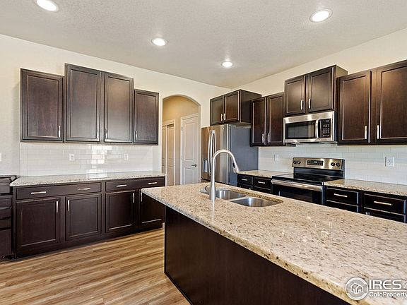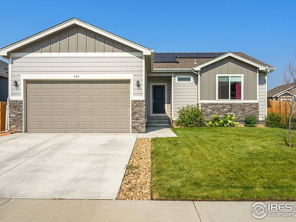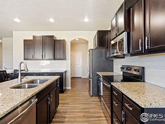 Superb 3 bed ranch built in 2018 with upgrades galore - granite throughout kitchen and baths, all stainless steel appliances (included), upgraded city-scaped cabinets with all new hardware, extended subway tile at kitchen backsplash, vaulted ceilings, owned solar system (drastically reduce those energy bills!), master Bath is upgraded with dual sinks, shower has tile surround to ceiling, water resistant laminate flooring extended into all high traffic areas, upgraded Carrier A/C unit, and a full basement with additional windows and bathroom rough-in. Great sized, fully fenced backyard, with sprinkler system front and back. New pool table in basement is included. Walking distance to neighborhood park and K-8 Charter School, Knowledge Quest Academy