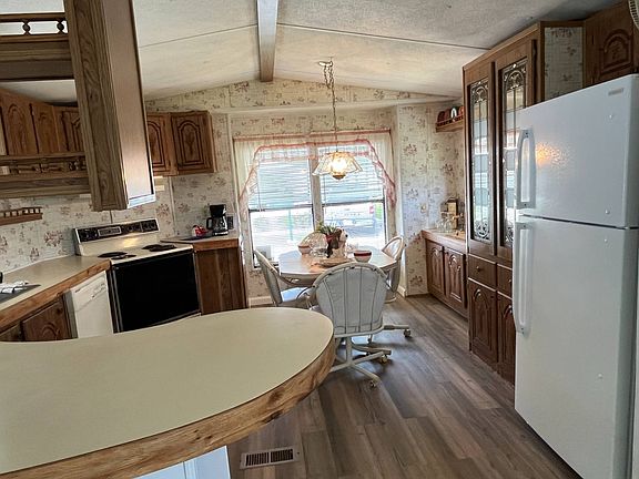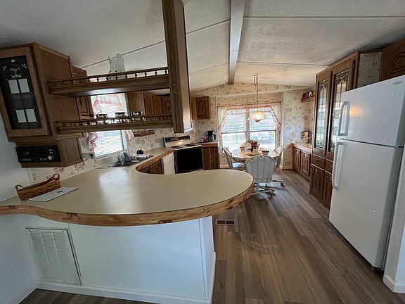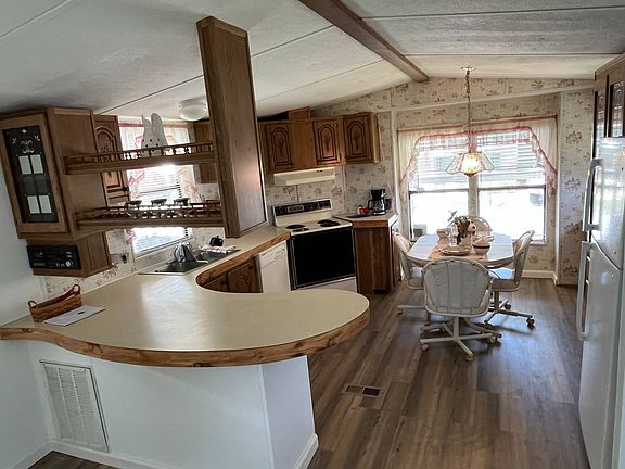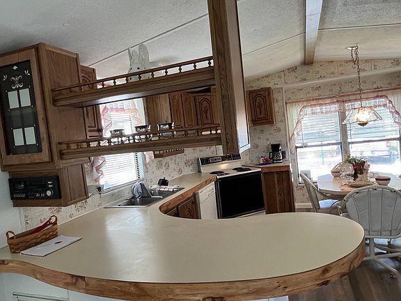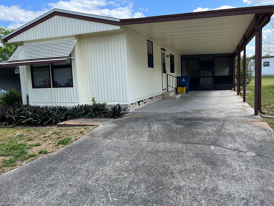 This beautiful partially furnished 2 bedroom/2 bath home located in Anglers Cove West, Lakeland, FL has it all! You will be welcomed by freshly painted walls and gorgeous new luxury laminate floors throughout, plus a brand new refrigerator and roof. In addition, all appliances such as a washer, dryer, refrigerator, stove, dishwasher, and range hood are included. And with 989 square feet of living space and a large screened sunroom w/shed, you can have plenty of room to relax and entertain. Not to mention, the master suite includes a walk-in closet and a master bath w/linen closet for extra storage. To top it off, there is a covered carport for two cars and a desk/den area in the hallway. All of this for a reasonable lot rent of only $442 a month which includes access to amazing amenities such as a heated swimming pool and clubhouse. Don't miss your opportunity and make this home yours today!