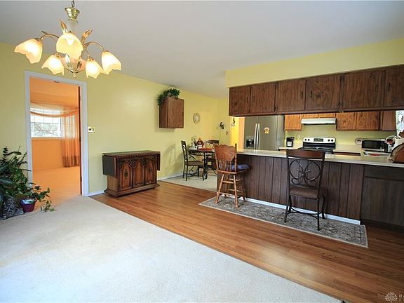 Must see to appreciate. 2,870 sq. ft. (per Realist). Feature 5 bedrooms plus 2 1/2 baths. "Saville Estates" Plumbed for utility in 1 bedroom upstairs. Spacious Bi-Level. 1 year HMS warranty. 4 or possible 5 bedrooms. 2 story entry. Roof 9 yrs. (2011), HVAC (2013). Some updated flooring and interior doors. Spacious chefs delight kitchen. Large family room with WBFP and bonus room off family room. Walkout finished lower level. .24 acre lot (great fenced backyard). Kitchen pantry. Vinyl replacement windows. Driveway features an additional parking pad. Turn-around driveway. * Fireplace not warranted (as-is), currently has an electric log set. East Dayton Christian School just across the street. Good value... compare.
