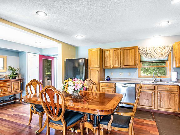 This property offers solitude inside and an oasis outside, providing you with the opportunity to rest and reset or play and create. 20-yrs of meticulous crafting has gone into the well thought out landscaping. The handmade waterfall with beautiful stonework and lighting sets the stage visually and has a way of giving you permission to pause. The pool area provides additional options to relax. The tiered back deck has an outdoor cooking area with marble top and sitting areas that offer expansive views of your private backyard throughout which are lilacs, strawberries, raspberries, peach and apple trees, and sandy play areas for the little ones! There are outdoor speakers and water hoses and electric run underground. Should you want to hook-up an RV, host a large gathering with tents, or perhaps have horses, you’re all set! Inside is an inviting open concept first floor with Brazilian cherry flooring and recessed lighting. The kitchen area has 2 floor to ceiling pantries in addition to the many cabinets. Just down the hall is a ½ bath and then the primary ensuite with a tiled enclosed shower, sink, jacuzzi tub, and walk-in closet. Upstairs are 2 bedrooms, a beautiful bathroom with tiled shower, double vanity, and natural woodwork. The 2nd floor bonus room has been finished for added living space. The basement offers 2 finished areas to be used as best suits your needs. Wrapping-up this magnificent property is an oversized garage with 2 workshop walls and 9’ ceilings.