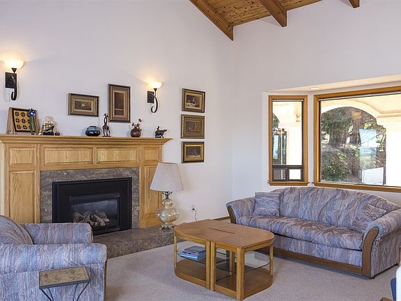 Amazing panoramic ocean, city, & hill views from nearly all rooms in both homes on a 1-acre parcel. Enter into the main home from a stained concrete tile courtyard & parking area. Main house has 2 fireplaces, cathedral ceiling in the step-down living room, formal dining room, carpet & hardwood flooring, built-in desk, tile counters, & center island w/ prep sink in the kitchen, solid Oak woodwork throughout including tons of built-in shelving/cabinetry! Recessed lighting. French door entry into master suite with a deck, walk-in closet, tiled soaking tub, walk-in dual-head shower, and separate toilet/sink area. 3-car detached garage with half-bath, built-in storage/shelving, & an attached carport. Beautiful 2-bedroom, 2-bath accessible second home w/ gas fireplace, stainless steel appliances, covered patio, attached garage & RV hook-up. Check out the lower-level for possible legal uses, such as wine cellar, game room, etc.