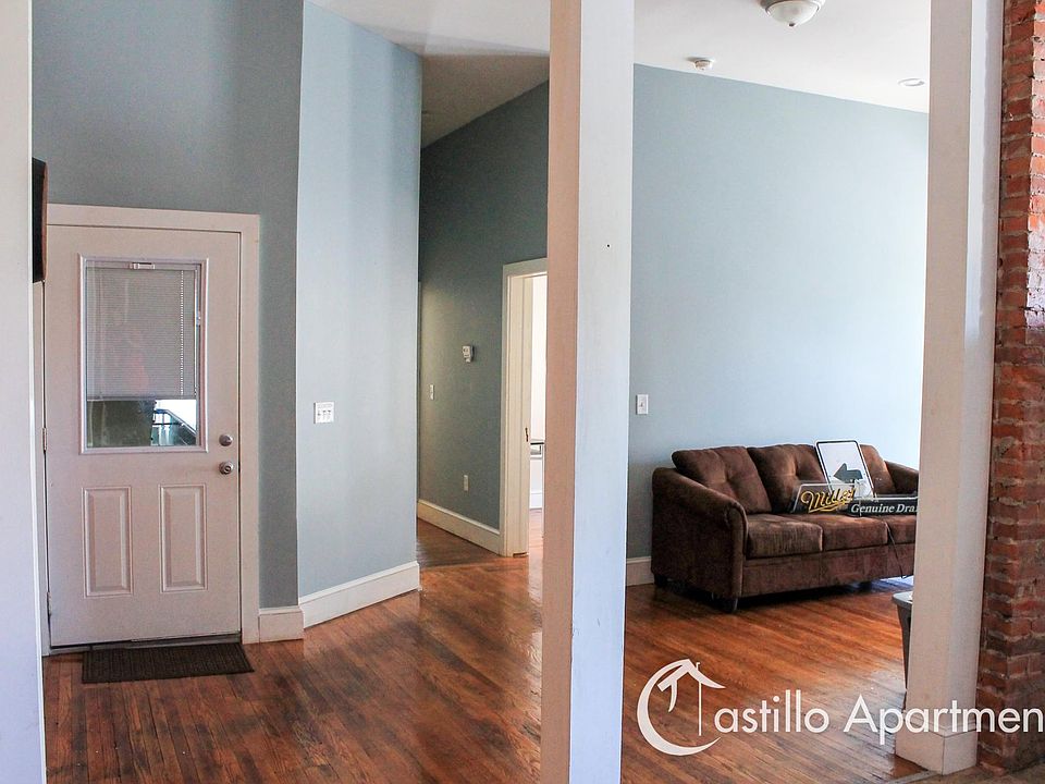 This lovely 2 bedroom 1 bath apartment has beautiful hardwood floors in the bedroom and living room and pretty vinyl flooring in the kitchen and bath areas. With gorgeous architectural touches such as exposed brick walls and pillars that seperate the kitchen and living areas. The bathroom offers his and hers double sinks and vanities. Convenient to local colleges, hospital and downtown shopping and dining. Small dogs are permitted for a $25 monthly pet fee. Security Deposit and $35 Back ground check fee per tenant. Tenant pays gas and electric. Tenant pays gas and electric