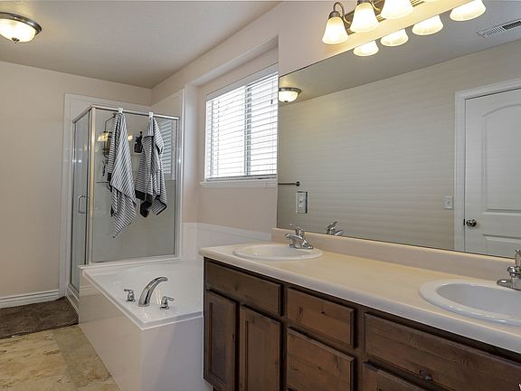 Located in Foxboro community, enjoy the spacious flow of this home featuring gorgeous wood laminate flooring, Travertine tile, neutral colors, Knotty Alder staggered cabinets. Large master suite w/sep tub/shower in bath & walk-in closet, add'l bdrms also very nice size, guest bath on main, laundry room on same level as bdrms. Fully fenced yard w/auto sprinklers. Area boasts beautiful parks w/lacrosse fields, soccer fields, splash pad, playground, & pavilion. Additionally this area is close to highly sought out Spectrum Academy. A truly must see! Renter pays for all utilities, lease terms can be six months to one year. Yard must be maintained, extra deposit required for pets.