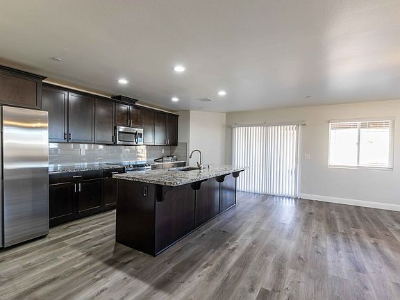 4 bedroom, 2 bath home AVAILABLE NOW for rent in Ridgecrest Heights w/ AC & SOLAR! $2,200/month. Elegant foyer just beyond the covered entry. Waterproof LVP flooring throughout! Gourmet kitchen overlooks the living and dining room - features upgraded stainless steel appliances (refrigerator, oven/stove, microwave, dishwasher), soft close cabinetry, granite countertops, generous kitchen island, recessed lighting and pantry space. Luxurious primary w/ lighted ceiling fan, great walk-in closet and ensuite w/ generous soaking tub & double vanity. The three guest bedrooms are all of good size w/ lighted ceiling fans and nice closet space. Indoor laundry with washer & dryer included! The home also has a large covered patio to enjoy in the back. Solar installed on the home to help offset the electricity bill. Estimated production of 10,423 kWh. Previous tenant did not pay for power besides SCE connection fee. 1 year lease. Tenant to pay utilities. Solar installed on the home to help offset the electricity bill. Estimated production of 10,423 kWh. Previous tenant did not pay for power besides SCE connection fee.