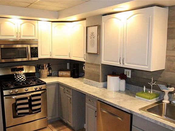 Great home for under $100K! Spacious EIK w/ solid surface counter tops, raised panel cabinets, recessed lighting & laminate wood plank backsplash, cathedral family room w/ slider to deck, 1st floor laundry & full bath, living rm w/ hardwood floors & built-ins, 2 large bedrooms & full bath upstairs, Partially finished basement, large fenced backyard, C/A, vinyl windows & siding. This one won't last!