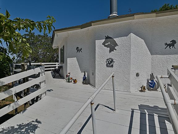 VIEWS VIEWS VIEWS! 3 Acres set up for Horses and livestock! Enjoy 360* views from this unique custom octagonal home with fully wrap around decking AND a Cupola perfect for stargazing! Home offers 3 bedrooms with potential for 4, and 2 baths plus half bath powder room on the upper level. Windows all around bring in natural light. Living area on upper level offers pellet stove, central kitchen with huge walk in pantry, an office and bedroom, all with amazing Views! Access the cupola though the walk in pantry area to see eye to eye with the birds! Head down to the lower level for 2-3 more bedrooms, a den, another office, bath, laundry area plus ''mud room'' as you enter from the ground level. Nearly 2400 sf Shop / RV garage for boats, toys, autos, you name it! PLUS another 3 bay garage.