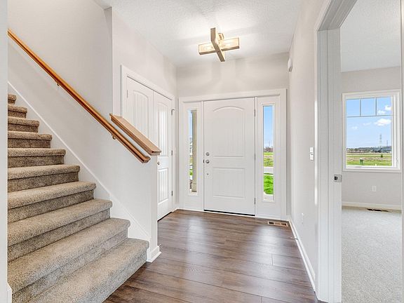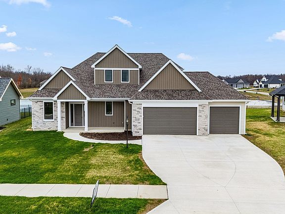 Introducing a brand new 1.5-story home built by Bob Buescher Homes. This newly constructed residence is situated in the desirable community of Orchard Hills and overlooks a beautiful body of water, providing a serene and picturesque backdrop. With meticulous attention to detail, this 3-bedroom, 2.5-bathroom home offers a generous 2,449 square feet of living space, complemented by a three-car garage measuring 796 square feet. As you enter through the foyer, you'll be greeted by an inviting and functional layout. To the left, a spacious office awaits—perfect for those who work from home or desire a quiet retreat. Straight ahead, the great room beckons with its soaring 11'9" ceilings and expansive windows, allowing for an abundance of natural light and breathtaking water views. The great room features a beautiful gas fireplace, creating an atmosphere of warmth and comfort. Open to the great room, the gourmet-style kitchen and dining area are designed to impress. The kitchen showcases a stunning 7' x 4'6" island, offering both functionality and style. Custom cabinetry by Zehr and elegant quartz countertops further enhance the sophistication of this space. A large pantry adds convenience, ensuring ample storage. This brand new home will also be equipped with a new kitchen appliance package. Tucked away behind the kitchen, the primary bedroom is generously sized and offers stunning views, providing a peaceful haven. The primary bedroom closet is a true gem, measuring 15'6" deep and offering ample space for all your wardrobe essentials. The ensuite bathroom features a beautiful tile walk-in shower, a double vanity with a cultured marble top, and a private water room. For added comfort, the laundry room is conveniently located on the main level. As you ascend the stairs, you'll discover a spacious bonus room, ideal for relaxation, entertainment, or cozy movie nights. Two upper-level bedrooms, both generously sized and each with oversized closets, provide comfort and privacy for family or guests. An additional full bathroom completes the upstairs level, ensuring that everyone's needs are met. One outstanding feature of this home is the direct attic access from the upper level, providing ease and convenience for storage. As our viewers head outside, they will find a covered patio where they can relax in the shade and enjoy the beautiful surroundings. For a closer look at this stunning property, be sure to check out the professional video available online!
