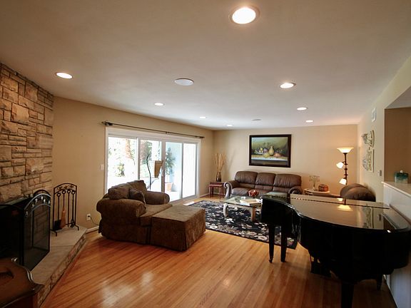 Lovely Mid-Century Modern home sited on a sprawling 100x108 lot in a highly desired Northridge neighborhood. Well set-back with a circular driveway, enter the home through a formal entry that leads to the living room that features a floor-to-ceiling stone fireplace and sliding glass doors that open on to the covered patio. The large family room features a beamed cathedral ceiling and an additional brick fireplace with raised hearth. The kitchen has been updated with granite countertops and offers a full breakfast room. The spacious sun room overlooks the rear yard with a sparkling pool and spa. Featuring 5 bedrooms and 3 baths, laundry room and direct garage access this home offers many possibilities!