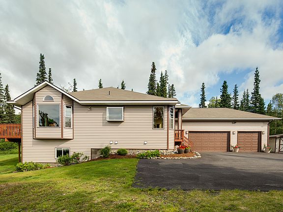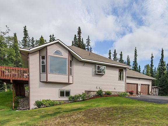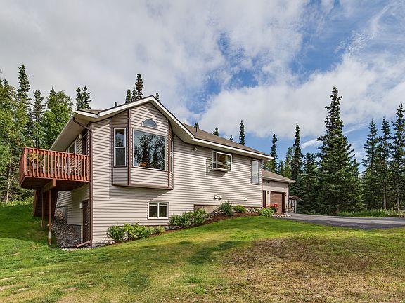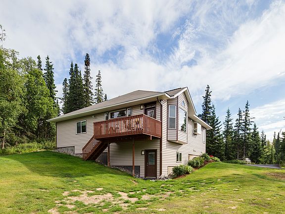 Low maintenance and super clean! Secluded executive ranch home in Stuckagain Heights on 2.5 acre forested lot with nice pond. Many upgrades include steel siding, radiant floor heating, paved driveway, walkout basement media room with built in surround sound, maple cabinets, maple laminate flooring, stainless steel appliances, new washer/dryer, new maple wood window trim, solid surface counters, huge windows, stunning views of AK Range, Sleeping Lady, and the city. Hike, bike or ski to Chugach State Park and Bicentennial Park. Watch wildlife, city lights and northern lights from your living room window. This is a very private and quiet home. Landscaped area leads to the forest that surrounds the house. Outside storage shed has 3 heated dog houses with attached kennel. Immaculate, well cared for home. Neighborhood Description 4 miles from Tudor Road, forested, quiet, secluded, like driving home to a private resort, yet quick access to town.