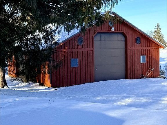 The setting of this home beautiful and its location better-rural but close to all amenities -best of all worlds and to top it off there is secondary driveway leading to picturesque modern pole barn for all the extras and equipment-Barn has two overhead doors -one oversized for the person with the xtra large toys