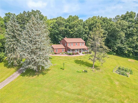 WOW!! Charming 4 bedroom 2.5 bath cedar home nestled in Hemlock provides privacy & incredible scenic views! Located on 11 acres this property has the absolute perfect setting. Relax on the large front porch overlooking the tranquil surrounding of rolling hills, apple trees, fruit & vegetable gardens. Inside you’ll find an updated white kitchen w/ new butcher block countertops, new sink & new stainless steel appliances. Stove nestled in a featured brick archway. Hand hewn beams & pegged wood floors throughout the first floor. 3 seasons enclosed glass room for relaxing in the hot tub & star gazing. Keep cozy by the woodstove during the winter nights! Upstairs you’ll find ample sized bedrooms w/ plenty of closet space. Primary bedroom offers vaulted ceilings, an ensuite bath & walk in closet! Heated garage equipped with workbench. Wooded backyard with sprawling acres of mature hardwoods great for trail riding, hunting or logging. Awesome location minutes from the Finger Lakes, parks, schools & amenities. This is the one you’ve been waiting for!