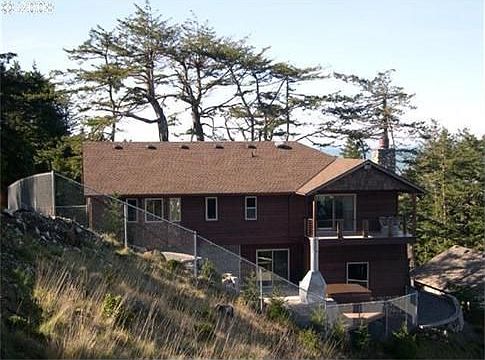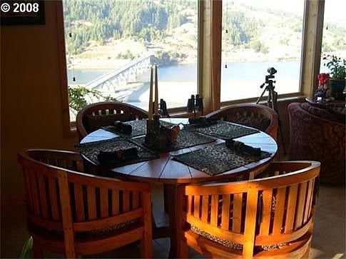 3 bed, 3 full bath custom view home has views from EVERY window- river, bridge, ocean, you name it. Master bath has steam sauna & body sprayer,custom cabinetry throughout,heated tile floors,granite countertops, 2 car garage,outdoor hot tub & fireplace, room for RV.Owner may carry.Adjacent.9-+ acre parcel may be purchased with this property for $150K. Furnishings other than personal items and art are included in sale!