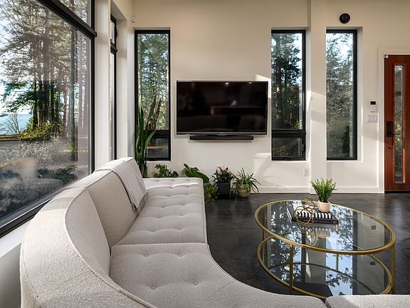 Idyllic 10-acre Padilla Bay Estate. Nestled among the trees is a thoughtfully designed contemporary home that boasts efficiency and privacy. Built with green construction methods on a low maintenance, chemical free landscape. Natural light floods through the oversized windows capturing stunning bay views. The open floor plan living space features, radiant floor heat, 10' ceilings, custom fir cabinets, granite countertops, and a beautiful Lacanche range. Stay connected with high-speed internet (rare for this area!) while living a tranquil lifestyle. Opportunity to build an additional dwelling with utilities conveniently available at the lower current campsite with 180 degree Bay views. Exceptional in all seasons, don't miss out on this one!