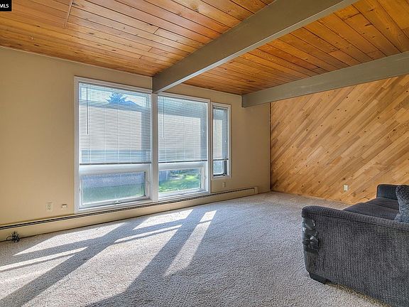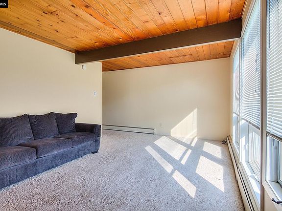 Welcome home to this lovely, light and bright end-unit condo! This split level condo boasts 3 bedrooms, 1 bathroom and is conveniently located near the airport, wetlands walking trail and tons of dining and shopping! You'll love the style of the tongue and groove ceilings, spacious layout, in-unit laundry and covered carport! HOA's include HEAT, hot water, sewer, water, trash service, building maintenance, insurance, taxes, rec facilities and extra storage! Call today to make this one home!